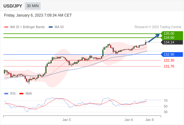 在 132.90 之上,看涨,目标价位为 134.60 ,然后为 135.00 。在 132.90 下,看空,目标价位定在 132.30 ,然后为 131.70。