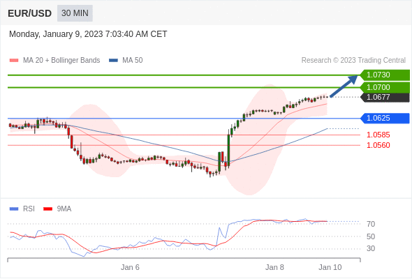 在 1.0625 之上,看涨,目标价位为 1.0700 ,然后为 1.0730 。 在 1.0625 下,看空,目标价位定在 1.0585 ,然后为 1.0560。
