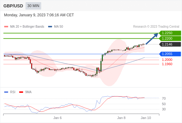 在 1.2055 之上,看涨,目标价位为 1.2200 ,然后为 1.2250 。在 1.2055 下,看空,目标价位定在 1.2000 ,然后为 1.1960。