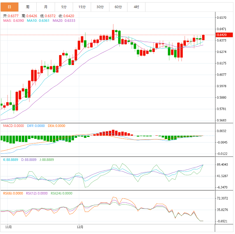 阻力位:0.6424 0.6461 0.6505
