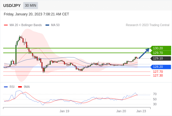 在 128.20 之上,看涨,目标价位为 129.70 ,然后为 130.20 。在 128.20 下,看空,目标价位定在 127.70 ,然后为 127.30。