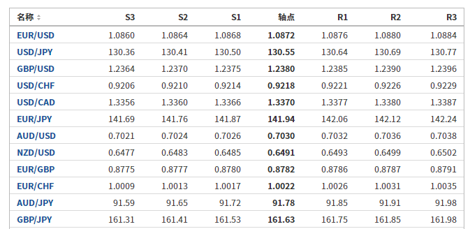 日元:美元/日元收高,收报130.640,涨幅0.84%。技术面上,汇价上行的初步阻力位于131.301,进一步阻力位132.02,关键阻力位于133.153;汇价下行的初步支撑位于129.449,进一步支撑位于128.316,更关键支撑位于127.597。