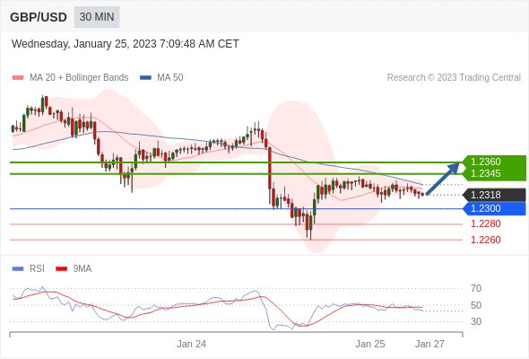 在1.2300上方建立多头头寸,目标在1.2345和1.236。另一种情况:在1.2300下方寻找进一步的下行空间,目标为1.2280和1.2260。