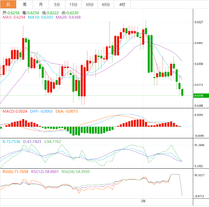 阻力位:0.63 0.6344 0.6377