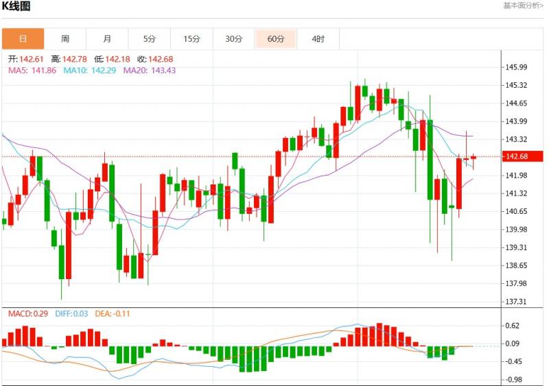 周四盘中,欧元日元报142.68,涨幅0.03%。
