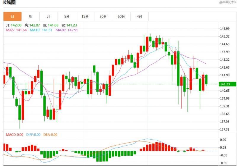 周二盘中,欧元日元报141.26,跌幅0.52%。