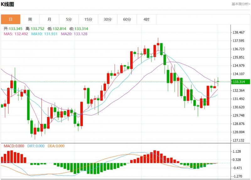 今日周一,欧元兑美元报1.0850,涨幅0.07%;英镑兑美元报1.2356,涨幅0.20%;美元兑日元报133.325,涨幅0.38%。