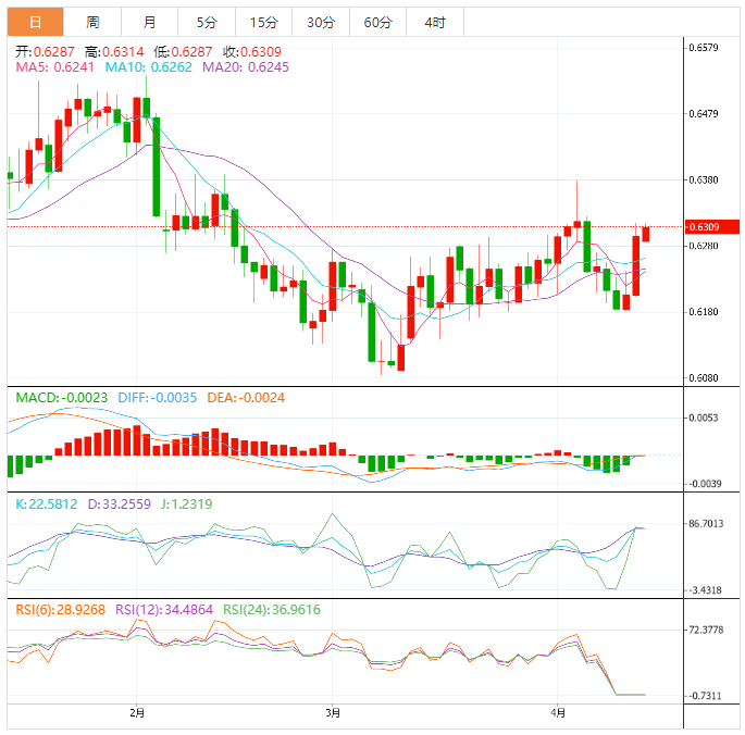 技术分析,截至发稿时,日收盘价多次未能突破100日移动均线(约0.6305),挑战了纽元兑美元多头的乐观情绪。然而,回调走势仍然难以捉摸,除非报价保持在200日移动均线0.6165的支撑位之上。