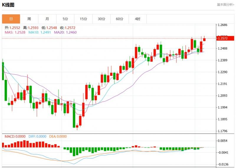 周四盘中,英镑美元报1.2571,涨幅0.22%。