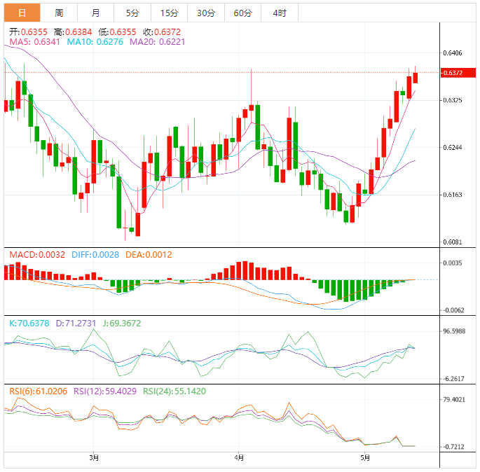 阻力位:0.6351 0.6367 0.6383