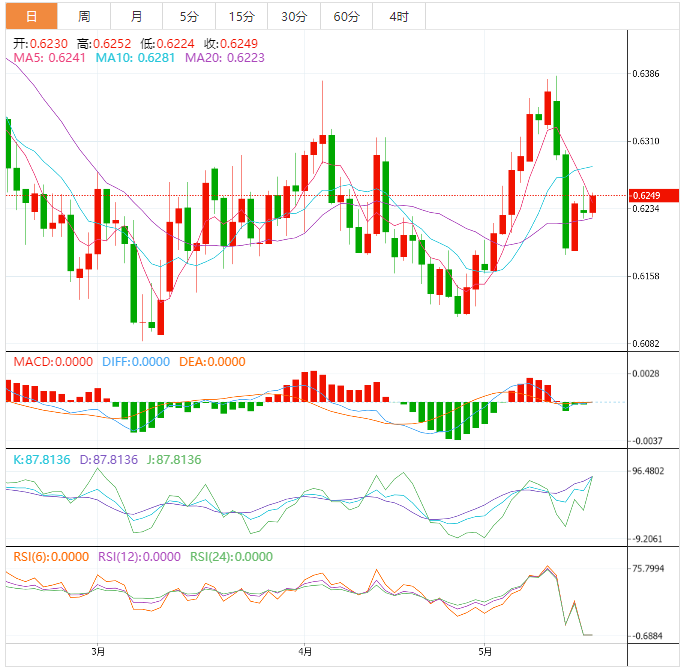 阻力位:0.6257 0.6282 0.6304