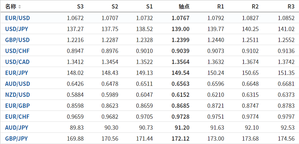 日元:美元/日元收高,收报139.454,涨幅0.63%。技术面上,汇价上行的初步阻力位于139.792,进一步阻力位140.26,关键阻力位于141.042;汇价下行的初步支撑位于138.542,进一步支撑位于137.76,更关键支撑位于137.292。