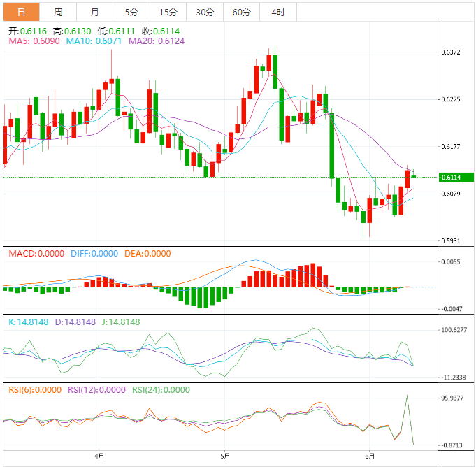 阻力位:0.6163 0.6183 0.6222