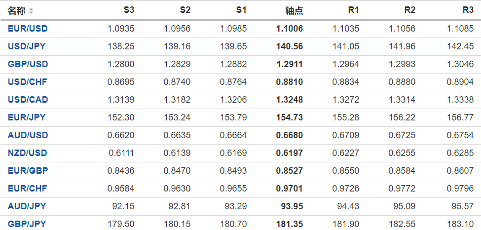 日元:美元/日元收低,收报140.356,跌幅0.67%。技术面上,汇价上行的初步阻力位于141.149,进一步阻力位141.945,关键阻力位于142.432;汇价下行的初步支撑位于139.866,进一步支撑位于139.379,更关键支撑位于138.583。