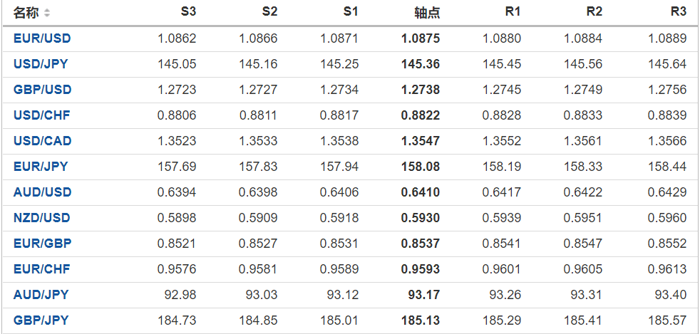 日元:美元/日元收低,收报145.36,跌幅0.32%。技术面上,汇价上行的初步阻力位于145.861,进一步阻力位146.186,关键阻力位于146.793;汇价下行的初步支撑位于144.929,进一步支撑位于144.322,更关键支撑位于143.997。