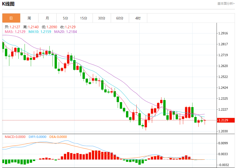 汇价高见1.2140,低见1.2090。上一交易日,汇价收于1.2120。