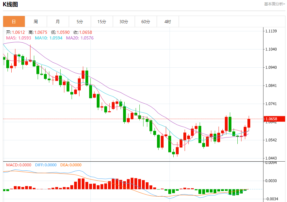 汇价高见1.0674,低见1.0590。上一交易日,汇价收于1.0615。