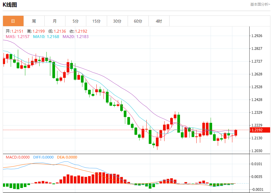 汇价高见1.2199,低见1.2136。上一交易日,汇价收于1.2151。