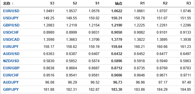 日元:美元/日元下跌,收报150.397,跌幅0.37%。技术面上,汇价上行的初步阻力位于150.941,进一步阻力位151.495,关键阻力位于152.043;汇价下行的初步支撑位于149.839,进一步支撑位于149.291,更关键支撑位于148.737。