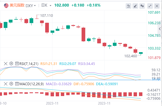 因美联储鹰派官员发表鸽派言论,美元指数周二跌至三个月低点。美联储理事沃勒表示,他对当前利率具有足够限制性感到越来越有信心,甚至暗示若通胀继续下滑,接近美联储设立的2%目标,有可能在未来几个月降息。