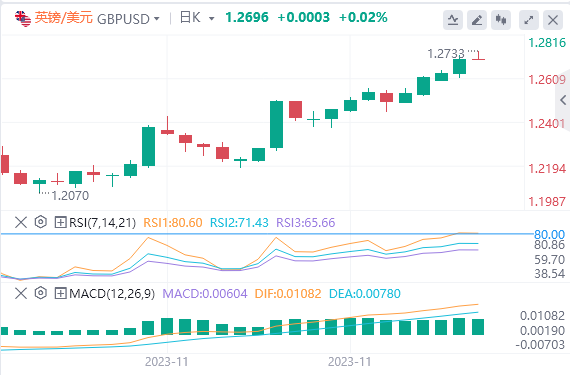 美元指数下跌0.11%,报102.65,眼下面临的支撑位是102.46(11月29日的月度低点),然后是101.74(8月4日的月度低点)和100.51(7月27日的周度低点)。上行方面,突破103.59(200天均线)将打开通往104.21(11月22日周高点)和105.51点(55天均线)的大门。