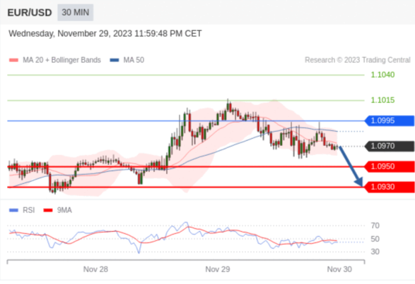 在 1.0995 之下,看跌,目标价位为 1.0950 ,然后为 1.0930 。