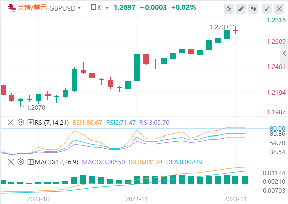英镑/美元昨日有所下跌,目前在1.27附近波动。如果英镑/美元保持在1.27以上,那么该货币对很有可能升向1.28。