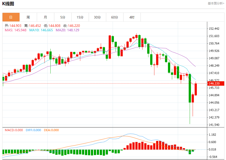 汇价高见146.452,低见144.808。上一交易日,汇价收于144.985。