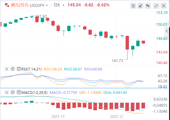 美元/日元从146.58下跌,只要维持在短期阻力147下方,那么该货币对可能继续下跌趋势。