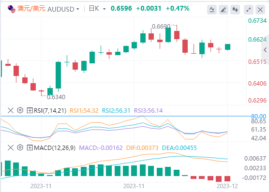 澳元/美元似乎在0.6650-0.6550区域内波动,若朝区间任何一端实现明确突破,将决定进一步走向。