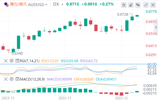 澳元/美元继续上升至0.67以上,可能会进一步涨向0.68,然后升势料暂停。