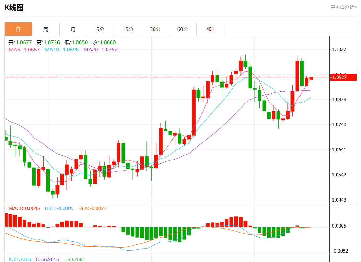 周二欧市盘中,欧元/美元最新报1.0927,日图涨0.04%.