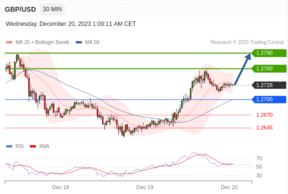 在 1.2700 之上,看涨,目标价位为 1.2760 ,然后为 1.2790 。