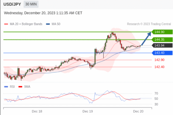 在 143.40 之上,看涨,目标价位为 144.35 ,然后为 144.90 。