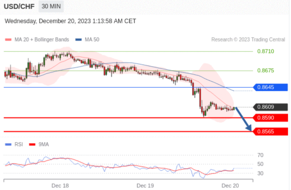 在 0.8645 之下,看跌,目标价位为 0.8590 ,然后为 0.8565 。