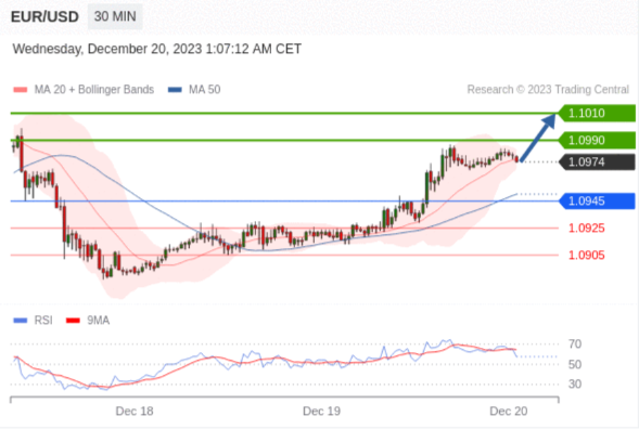 在 1.0945 之上,看涨,目标价位为 1.0990 ,然后为 1.1010 。