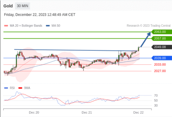 在 2039.00 之上,看涨,目标价位为 2057.00 ,然后为 2063.00 。