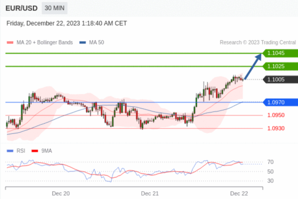 在 1.0970 之上,看涨,目标价位为 1.1025 ,然后为 1.1045 。