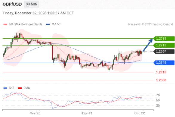 在 1.2645 之上,看涨,目标价位为 1.2710 ,然后为 1.2735 。