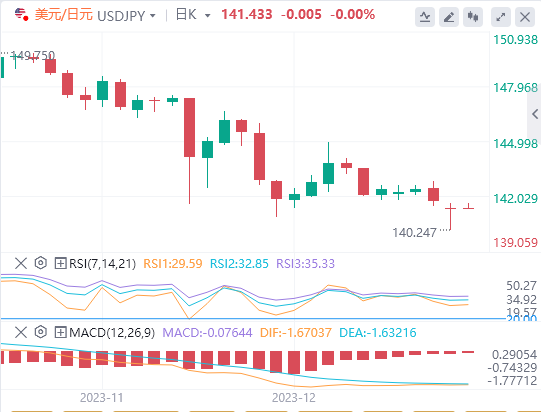 跌至140.25,随后大幅回升,与美元指数的走势一致。虽然高于140-141,但我们预计未来几个交易日将升至142/143。
