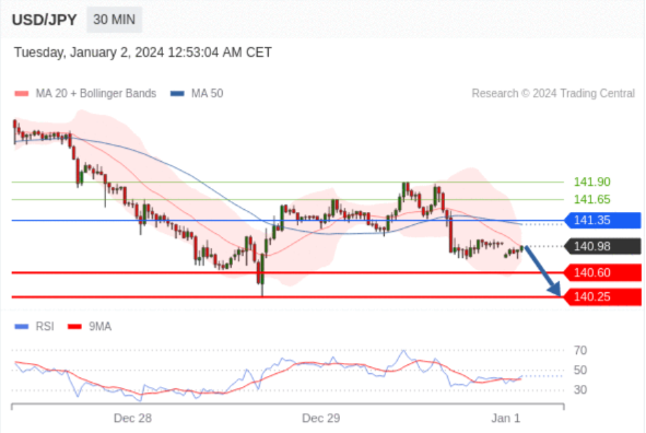 在 141.35 之下,看跌,目标价位为 140.60 ,然后为 140.25 。