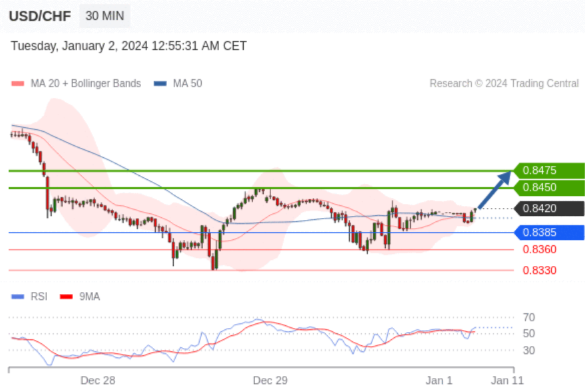 在 0.8385 之上,看涨,目标价位为 0.8450 ,然后为 0.8475 。