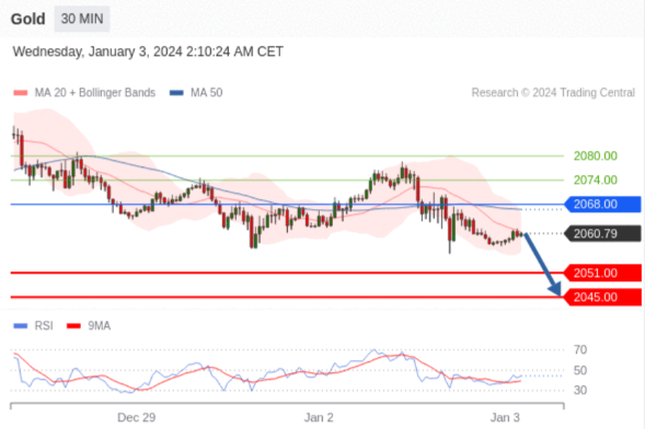 在 2068.00 之下,看跌,目标价位为 2051.00 ,然后为 2045.00 。