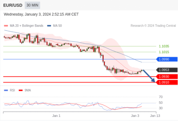 在 1.0990 之下,看跌,目标价位为 1.0930 ,然后为 1.0910 。