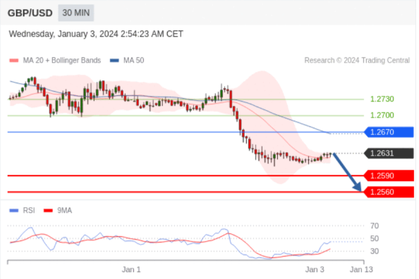 在 1.2670 之下,看跌,目标价位为 1.2590 ,然后为 1.2560 。