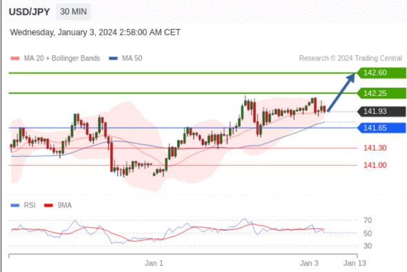 在 141.65 之上,看涨,目标价位为 142.25 ,然后为 142.60 。