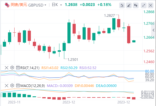 英镑/美元正跌向1.26支撑位,如果守住该支撑位,可能会反弹向1.28-1.26区间的上端。如果跌破1.26,英镑/美元容易测试1.24,然后跌势可能暂停。需要关注1.26处的价格走势。