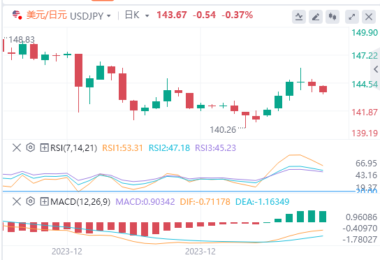 美元/日元也从146大幅下跌,如果在144下方持续跌势,可能会跌向143。近期的观点为看空。