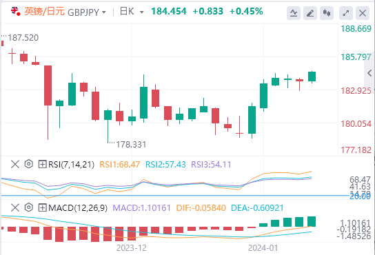 英镑/日元仍然受到以182.15水平为代表的积极因素的影响,形成了最初的支撑,除了最近提供积极势头的主要指标外,现在注意到其在184.00附近的波动。