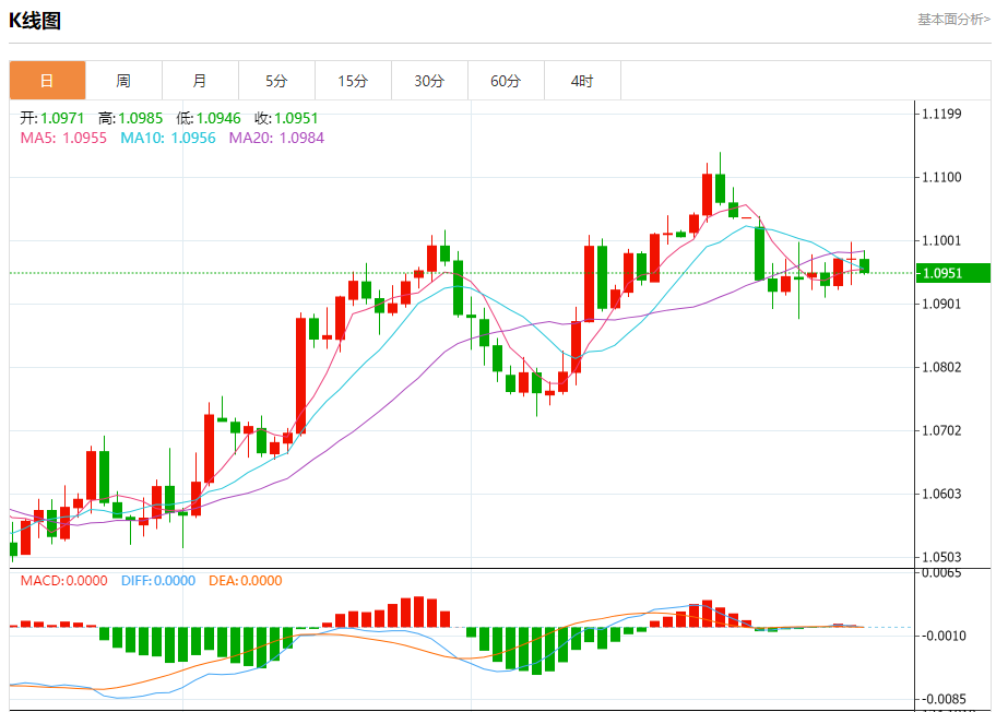 汇价高见1.0985,低见1.0946。上一交易日,汇价收于1.0972。
